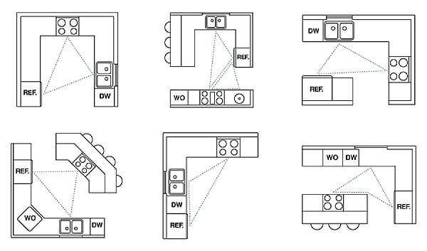 مثلث کار: مثلث کار (اجاق گاز، سینک ظرفشویی، یخچال) را در نظر بگیرید تا جریان کار در آشپزخانه بهینه شود.