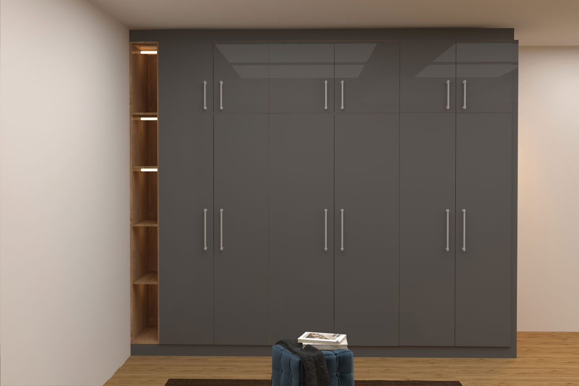 توضیح: آینهها، یکی از بهترین ابزارها برای بزرگتر و روشنتر نشان دادن فضا هستند. کمد دیواریهای با دربهای آینهای، با ایجاد انعکاس نور و فضا، به بزرگتر و روشنتر شدن اتاق کمک میکنند. این کمدها برای اتاقهای کوچک و کمنور بسیار مناسب هستند.
